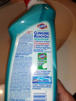 Simply drop tablet into tank to flush away grime with the power of clorox bleach. Clean and disinfect with clorox toilet bowl cleaning gel that kills 99.9% of bacteria and leaves your toilet sparkling clean. The bleach breaks down rapidly to mostly salt and water. Clorox toilet bowl cleaner, clinging bleach gel, a disinfecting gel that clings to your toilet bowls surface, delivering the trusted clorox clean to all areas and leaves a cool wave scent.